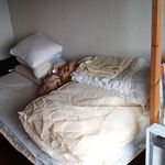 共用部分は家具・家電つきでキッチンとバスルーム共用。キッチンには冷蔵庫や電子レンジ等があります。洗濯機もあります。今ならベッドもあります(不要であれば捨てます)